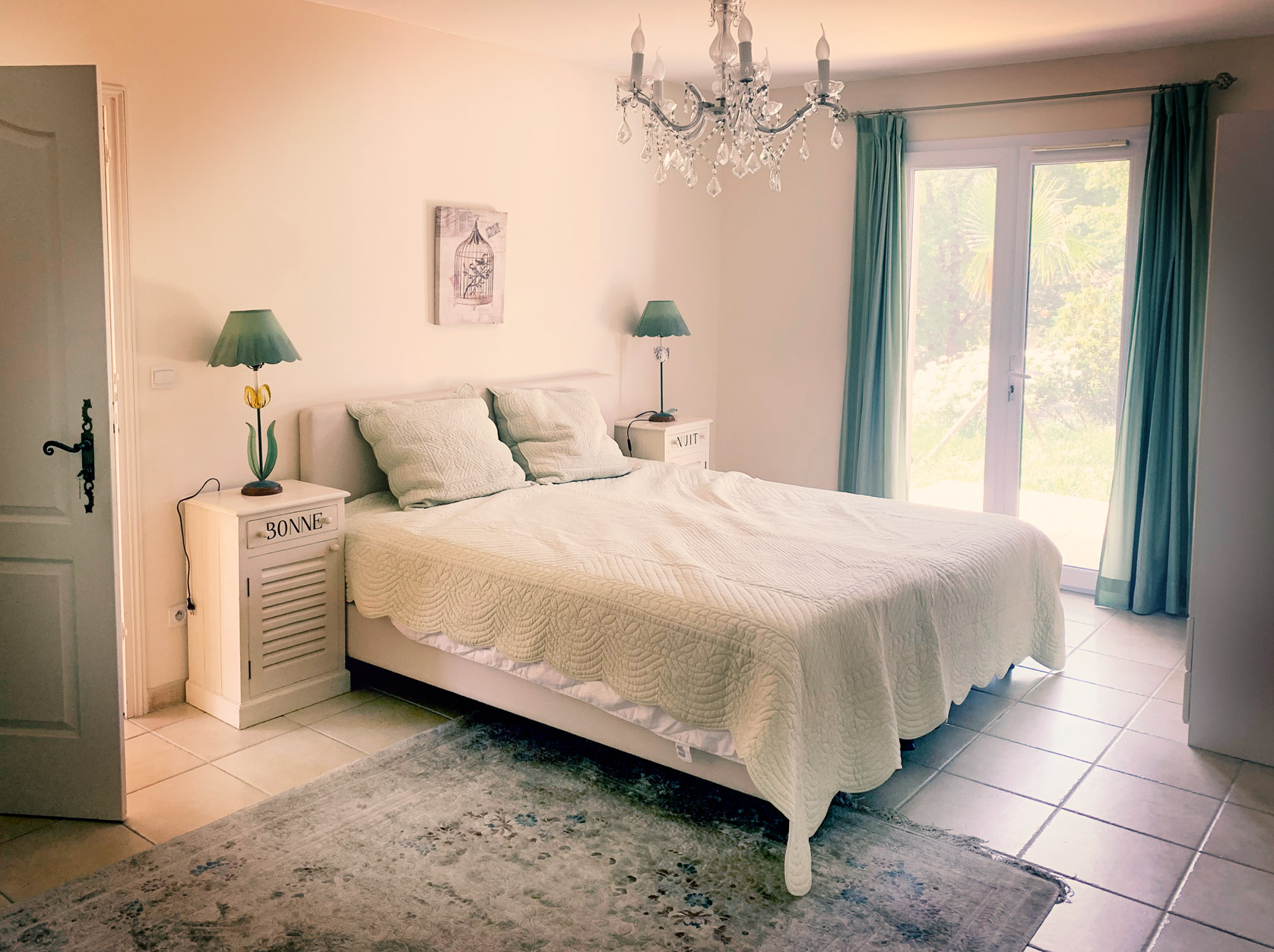 Alle værelser har terrassedøre til haven og er udstyret med myggenet.